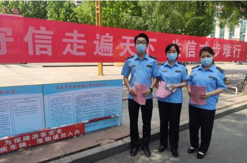 生态环境局工作人员向群众发放《诚信倡议书》、《山东省企业环境信用评价办法》等宣传资料150余份,倡导企业遵守环保法律法规,履行环保社会责任,坚守环保道德底线,打造环保诚信企业;引导公众树立生态文明理念,践行绿色低碳生活,监督环境违法行为,守护地球美丽家园。