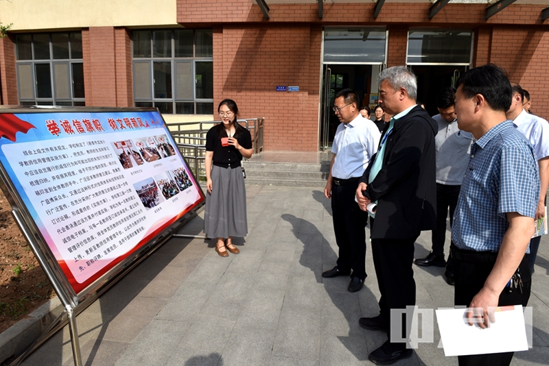 “创建诚信校园,争做诚信师生”。随后去往的新泰市龙池小学专门设立了诚信故事连廊、诚信书柜以及诚信借用站。“诚信故事连廊上的绘画作品都是由学校师生共同完成,每一幅都讲述了一则诚信小故事,同学们从学中画,从画中学,争当新时代诚信好少年;学生阅览大厅内设诚信书柜,老师将学生们的诚信作品编辑成册,形成了诚信故事集、诚信手抄报、诚信征文集和诚信漫画等作品专栏;每一楼层还设置诚信借用站,为学生们提供了极大的便捷,学生如果忘记带学习用品,都可以在这里借用,用完后主动归还,让诚信种子在学生幼小的心里生根发芽。”龙池小学的工作人员向采访团一行介绍道。